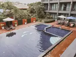 This hotel is located opposite Cha-am Beach. There is a small road in the middle. Around the hotel, there are 7-Eleven and cafes. It is very convenient for food and drink.