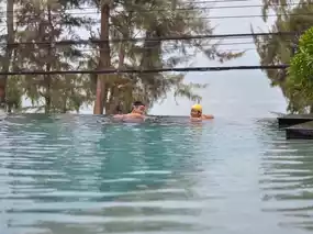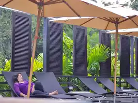 We booked a room next to the swimming pool, opened the front door of the room and jumped out to the table to play in the water. There is also a very large bathtub in the room