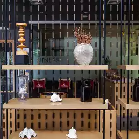 When you walk in, you will see the blue wall and the flock of golden birds, like a greeting that you have arrived.