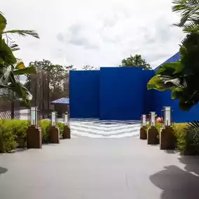 The more the entrance door is very wide, the lobby will have a stream flowing from the chain, very eye-catching. On the walkway between the swimming pool and the guest room zone, both sides are surrounded by high walls with patterns like ancient Thai architectural scrollwork.
