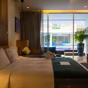 And I would like to recommend the Deluxe Pool Access room on the ground floor next to the swimming pool. The interior is very well divided, spacious, anyone who wants to swim can walk down to play from their own room. There are complete facilities. The bathroom has a bathtub, very cool.