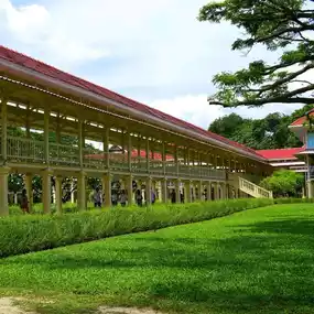 is a summer palace. In the past, it was a resort during the reign of King Rama VI. It has a Thai-European style architecture. It is made of golden teakwood. The design emphasizes openness and airiness to the sea and mountain breezes. It is naturally shady.