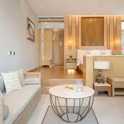 We stayed in the 𝗟𝗮𝗴𝗼𝗼𝗻 𝗣𝗼𝗼𝗹 𝗔𝗰𝗰𝗲𝘀𝘀 room. The room is very spacious, the room is perfectly divided. When you walk out of the room, you'll see the swimming pool. You can walk down and play in the water and have fun. The room we stayed in also includes Club Benefits. At 5 pm, they will serve Canapes with drinks. Come chill here