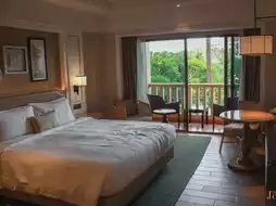The Deluxe Room of Dusit Thani Hua Hin is approximately 36-42 square meters in size. It is decorated in a combination of luxury and Thai style. There is a spacious sitting area. The room uses soft, soothing colors and is fully equipped with amenities such as a flat-screen TV, work desk, minibar and coffee maker. In addition, the bathroom has a separate bathtub and shower area with quality toiletries from leading brands.