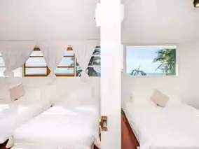 And the beach in front of the house has very clear water. The sand is fine. You can really play all day long.