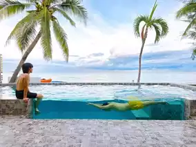 ⭐️ Highlights Glass swimming pool by the sea is soooooo beautiful!!