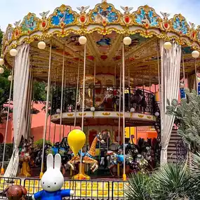Cha-am Camel Park is a place that combines many places into one. Here, there is a zoo to see, camels, flamingos, an amusement park to play, a carousel, and many other rides. There is a cafe zone where you can sit and eat delicious cakes, refreshing drinks, and shopping. It is suitable for children to learn about the wide world.