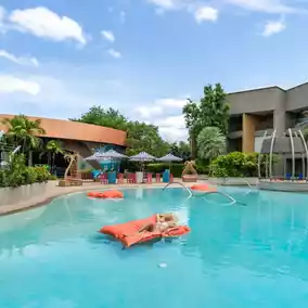In the middle, there is a Pool Bar. Near the pool, there is a children's pool zone, Fitness and