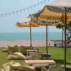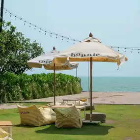 Every time you visit a seaside city like Cha-am-Hua Hin, one thing that Cafe hoppers don't want to miss is checking in at a beautiful cafe and spending time relaxing in a place with a good atmosphere. bOnnie on the beach is another cafe that meets the needs of Cafe hoppers. With a location right on the beach and decorated in white-cream-yellow tones, creating a cute and bright atmosphere in a minimalist style, just like the name of the shop "bOnnie" 🥰