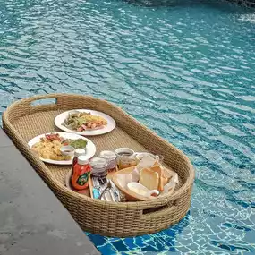 Our room is the Vann Plus Pool Suite, as I said, using the right to travel together, only 🤩1,900 baht left 🔥+ 300 baht for the Floating Basket, which gives us a lot of food, but we can choose an egg menu, there are many to choose from, served in the room