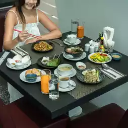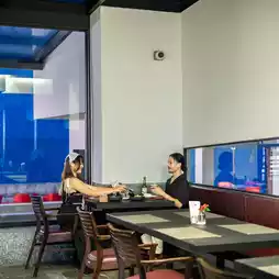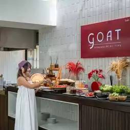There is a restaurant here called GOAT that serves buffet breakfast and dinner to late night.