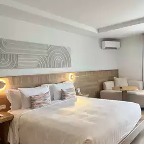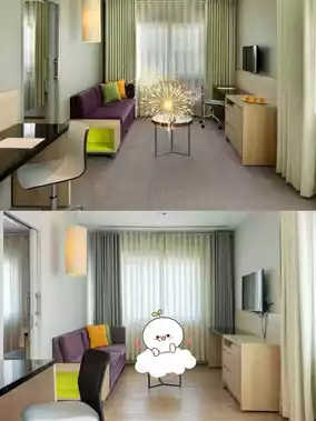 The service is excellent. The staff are lovely, friendly, and very respectful to customers. They greet you every time they see you. The accommodation is clean, and the room smells fresh and clean. There is a large bathtub for soaking. The bed is so comfortable that you won't want to get up. The breakfast offers a variety of menu options. The accommodation is right by the sea, but it seems you can't swim there. However, the hotel has a small swimming pool, which is perfect for families. Kids will have a lot of fun playing in the water. It's worth the trip.