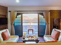 Golden Beach Cha-Am Hotel (โรงแรมโกลเด้นบีช ชะอำ) is located just 100 meters from Cha-Am Beach. The hotel offers 203 rooms in 11 different types, including Superior, Premier, Deluxe, Suite, and Family rooms. The rooms are very spacious, and the balconies offer stunning sea views. Guests can enjoy watching the sunrise and sunset from their rooms. The hotel features a large swimming pool with both indoor and outdoor sections, as well as La Terrace restaurant, a coffee shop, and a restaurant that serves cold drinks and special cocktails made from Phetchaburi's famous ingredients. There is also a fitness center for guests' convenience. The hotel provides amenities such as a refrigerator, coffee or tea maker, instant tea, minibar, instant coffee, bottled water, hairdryer, and free Wi-Fi in all rooms. Additionally, the hotel offers a buffet breakfast at The Coral restaurant. Golden Beach Cha-Am Hotel is only 1.8 kilometers from Triple Tree Beach Resort.
