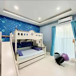 🛏️ The house has 4 bedrooms, 5 bathrooms, and can accommodate up to 15 people. If there are 15 people, it's only 800 baht per person. It's a great deal!!! This summer, if you don't know where to go, Kluay invites you to cool off at Chern Mar Pool Villa 🏖️