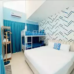 🏡 A new house decorated in a minimalist style, with a blue and white theme, spacious, clean, and fully equipped with toys. Both children and adults love fishing games. There are many photo spots. Party lovers and photography lovers shouldn't miss it.