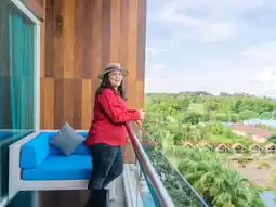 🛌 This trip, Moo came to stay in a 2-story Deluxe pool access room with 2 bedrooms and a living room area, a small kitchen counter, and a balcony with a door leading directly into the pool. Or if there are only 2 of you, there are rooms in the building with a sea view to choose from.