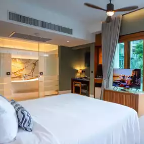 Today, May will take you to see this place, RELO' The Urban Escape - Hua Hin. The rooms here have many room types. For the room that May chose to stay, it is a ๐๐๐ก๐ก๐ ๐ผ๐๐๐๐จ ๐๐ค๐ค๐ก. You can walk down to the pool from the front of the room. There is a private rooftop. The room is complete. There is a control system to turn on-off the lights, curtains. The bathroom has a sunroof. I like it very much.