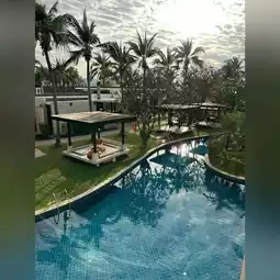 Two super comfortable Queen size beds and a large long sofa, actually enough to sleep 5 people! The TV is not a smart TV, but the service makes up for the shortcomings of the hardware. The second-floor balcony overlooks the entire swimming pool area. It is so relaxing to drink a glass of wine while looking at the pool view.