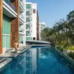 At the swimming pool, there are many beautiful photo spots.
