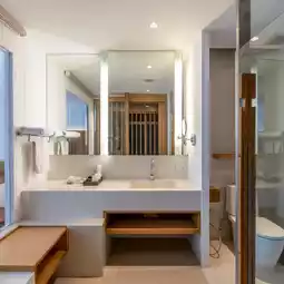 The facilities here, such as a swimming pool, fitness center, steam, and sauna, are very complete.
