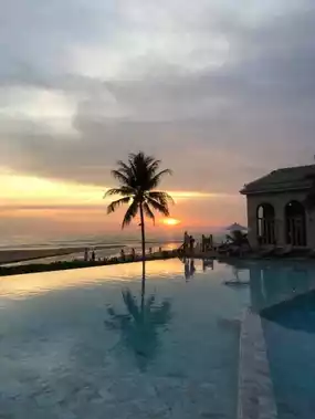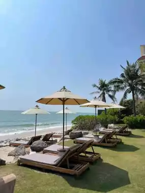 #Romantic accommodation Devasom Hua Hin, a luxury resort that uses a simple and peaceful concept, but is full of local charm that makes guests unforgettable. We give it the number one spot in our hearts🫶🏻 I was impressed by the service and atmosphere of the hotel. It has a Thai feel, is comfortable, and the rooms are very cute. Plus, it's right on the beach. The food is delicious. It's perfect for relaxing. And the sunset here is very romantic.