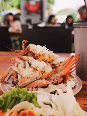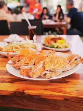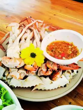 🦀 Chomview Seafood, Hua Hin is a large seafood restaurant located on the beach. The atmosphere of the restaurant is airy and comfortable. There are many seating areas to choose from, both indoor and outdoor, allowing you to fully enjoy the sea view. The restaurant's menu offers a variety of fresh seafood and spicy Thai food. The restaurant's popular dishes include steamed blue crabs, grilled tiger prawns, and clear seafood tom yum. In addition, the restaurant also has live music in the evening, making the atmosphere of the restaurant more lively and fun.