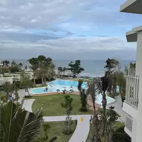 AVIYANA Hotel Hua Hin is located by the sea. You can see the sunrise in the morning. It is not a large hotel, but it is beautiful and has many photo spots. The beach is clean. You can swim. The room is spacious and has complete equipment. There is a swimming pool by the sea. Book a deluxe seaview room with a balcony to see the swimming pool and the sea. Good service, lovely staff. Breakfast may not be diverse, but the taste is good.