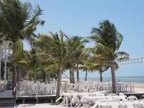 #NewYearNewTrip Come visit Phetchaburi Province, stop by Chomview Restaurant, a seaside restaurant. The sun is strong, the wind is very strong outside, giving a good atmosphere.