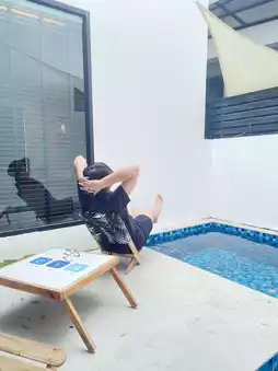 Come to visit Cha-am. Choose a lovely private pool villa in a loft style. The atmosphere is very quiet. It's very private because there aren't many rooms, only 4. The staff takes good care of you. There's a free water and snack zone. There's a communal pool, but we'd rather play in our room. The pool in the room is small and not very big, but it's okay. The bed is soft and comfortable. It's not far from the accommodation to Cha-am beach. The price is not expensive either.