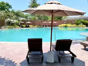 The hotel's swimming pool is very large and clean, with separate zones for children and adults, as well as areas to relax by the pool. Other activities include cycling and spa services. The breakfast offers a variety of options, including Thai and international cuisine, with delicious flavors and fresh ingredients. The staff provides excellent service, being polite and attentive to details. Room rates start at 1000฿, which is reasonable considering the atmosphere and services provided. It is suitable for family vacations, couples, or groups of friends.