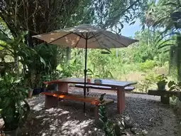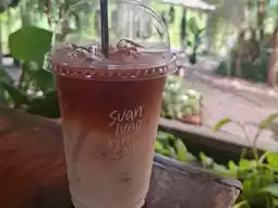 📍Located in Cha-am, Phetchaburi, this cafe has a garden atmosphere with a shady atmosphere. Everywhere you look, it's green and pleasing to the eye. It's perfect for escaping the heat. Sit under the shade of the trees and turn on the fan for a bit. It's cool and comfortable. Sitting and sipping on a cold drink is even more enjoyable.