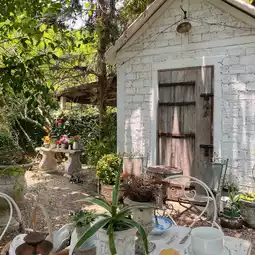 𓂃 A homey-style cafe, a white house surrounded by green trees, cute flowers, and many photo spots.
