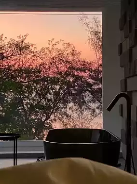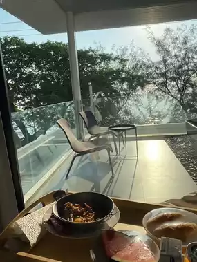 The resort is located in a small alley, just a few steps from the beach, near local restaurants, markets, and convenience stores. Walking in the morning feels great. The atmosphere inside the resort is shady, with lots of trees. There are corners to sit, sip coffee, or read a book in a chill way.