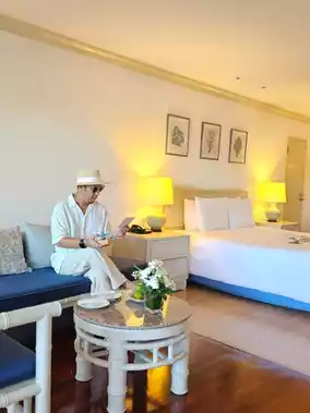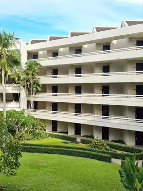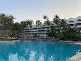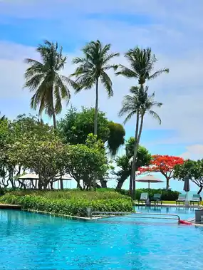 Regent Cha-am Beach Resort, a luxurious beachfront hotel with a variety of over 400 Thai-style rooms, along with a restaurant and a large outdoor swimming pool.