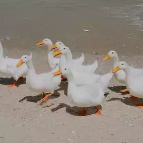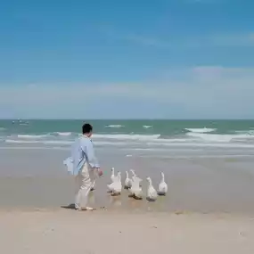The cafe is decorated in a full summer theme, bright colors, and most importantly, the highlight of this place that made us have to come is the flock of little white ducks in the cafe and will come out to walk around the cafe and along the beach. It's so cute🪿