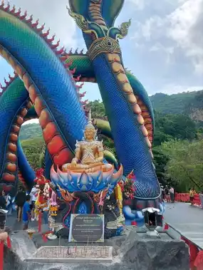 🌼 Wat Tham Chaeng or the Naga temple in Phetchaburi Province is recommended for those who love making merit. In addition to making merit, you can also see the beauty of the Naga, which is the largest Naga in Thailand. It is very beautiful. The temple itself is located in the middle of nature in a quiet atmosphere, surrounded by mountains and trees. It is shady and suitable for practicing Dhamma and relaxing the mind. I saw another temple that is worth checking in to make merit and take pictures of the beauty.