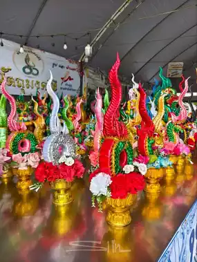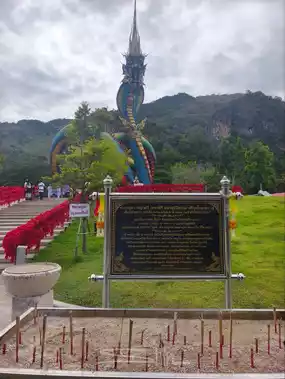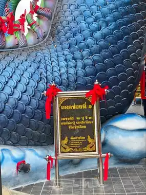 Just make merit by offering incense and red cloth according to your faith. Bring the red cloth to write your name, date of birth, and the blessing you want to ask from Grandfather. Then, light incense in front of Grandfather and make a wish. When you are done, stick the incense in and walk to the back and chant another 9 prayers, which are located in the middle of the Naga’s body. Ready to tie a red cloth at the point where we want to make a wish, the ceremony is complete. Anyone passing by, don't forget to stop by and help make merit and build a new church that is under construction and not yet finished. Don't forget to make merit and see one of the most beautiful Thai temples in the country.