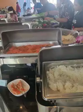 The breakfast restaurant is located in front, right on the road called the beach. There is a variety of food to choose from, focusing on Thai food. There are also breads, salads, hams, and sausages.