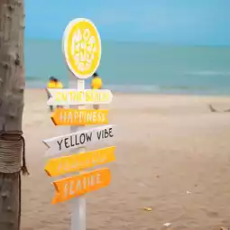 This beachfront cafe in Bang Kao is filled with adorable photo spots! The shop's bright pastel yellow theme exudes a light Bali vibe. There's a beachside bean bag area, hammocks, wooden beach tables, and most importantly...a cute duck strolling around, creating a truly natural atmosphere. 🐣