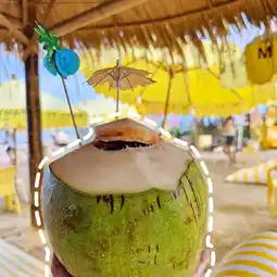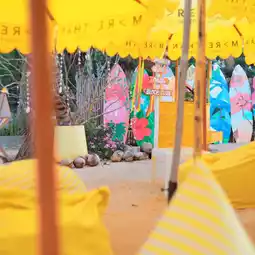 • Plenty of photo spots, including colorful beach chairs, parasols, and swings.
