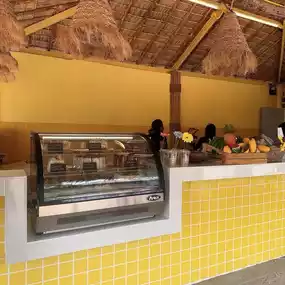 The interior is decorated in white and blue, giving it a resort feel, and the beach view in front of you will make you feel like you're in Bali or Santorini 👀