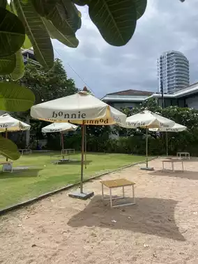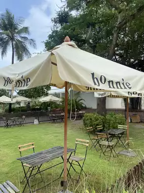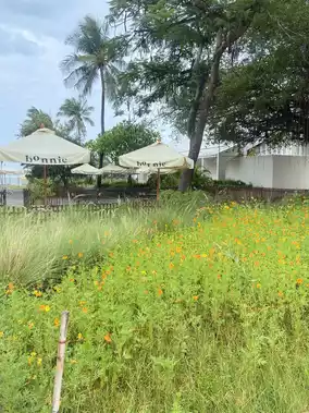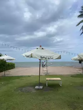 Atmosphere/Location - A beachfront cafe in the Cha-am, Hua Hin, Phetchaburi area. Decorated in warm, minimalist cream tones, it offers both air-conditioned rooms and a relaxing sea breeze. We recommend visiting in the evening for a beautiful view. There are flowers and a chill-out area, perfect for taking photos.