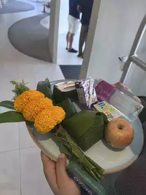 • The hotel is decorated in a modern, minimalist style with a touch of Thai influence.