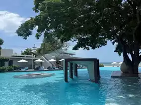 The hotel is located right by the sea, just a little past Cha-Am Beach. As a family with young children, we absolutely loved it. The swimming pool is surrounded by lush greenery, and I must say the entire hotel atmosphere is very serene. Our kids could swim all day because the large trees around the pool provided plenty of shade, making it cool even under the strong sun. The service was excellent, and all the staff were cheerful and friendly.