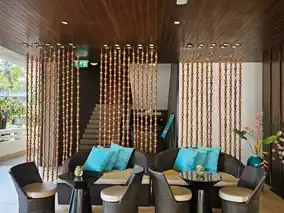 Beautiful hotel by the beach with a nice atmosphere suitable for all ages.