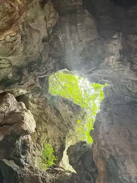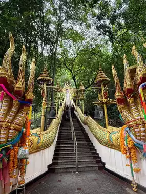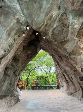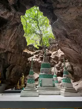 Or Wat Cha-am Kiri in Cha-am District, Phetchaburi Province. Walk through the Bodhi Leaf-Shaped Cave, the only one in Thailand. It's incredibly beautiful and unseen. The ascent is a steep but safe Naga staircase. From there, you can enjoy stunning views, including Buddha statues in various postures, and panoramic views. The descent is more convenient via the back entrance. Don't miss it if you're visiting Phetchaburi Province! ☘️🍃