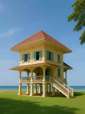 Experience the tranquility of this summer palace, once the residence of King Rama VI, nestled along Cha-am Beach. The pale yellow wooden pillars lined the beach, complemented by the red-tiled roof. The long wooden bridge leading to the sea creates a truly romantic atmosphere. The sunset reflecting off the water is truly captivating.