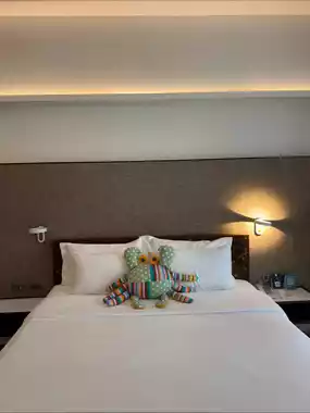 🛏️ The rooms are clean, spacious, and quiet, perfect for a truly relaxing stay. The beds are soft and comfortable, the lighting is warm and pleasant, and the amenities are complete. **The pool itself is relaxing, and families often come here with children having fun in the water. However, the cleanliness of the pool might need a little checking, as the sand is all over the pool floor. Since there's a sand zone, walking into the pool can be quite overwhelming.