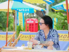 ✨ Choose from air-conditioned seating areas for a cool breeze, or enjoy a relaxing seaside stroll along the sand. With canvas tables and blue and yellow umbrellas, it's a great place to take photos. Ladies visiting Phetchaburi beach and looking for a beautiful cafe to take photos at, this cafe is sure to delight.