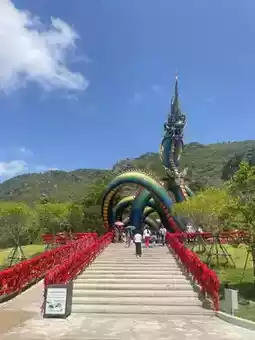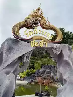🐉 Come admire the magnificent Naga statue at Wat Tham Chaeng, a must-see attraction for many, especially those who are into spiritual practices and Naga worship. This large Naga statue stands approximately 31 meters tall, has nine passageways, and is 227 meters long. Its sapphire-colored, or the green of a beetle's wings, is dimensional, beautifully detailed, and colorfully magical. Anyone visiting Phetchaburi must stop by to pay their respects at least once.
